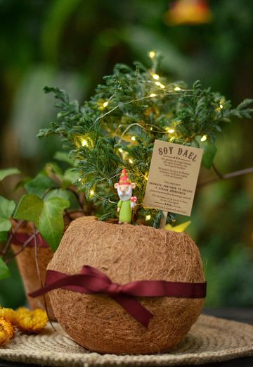 Incluye tarjeta de cuidado del pino y mensajito de Dael el gnomo